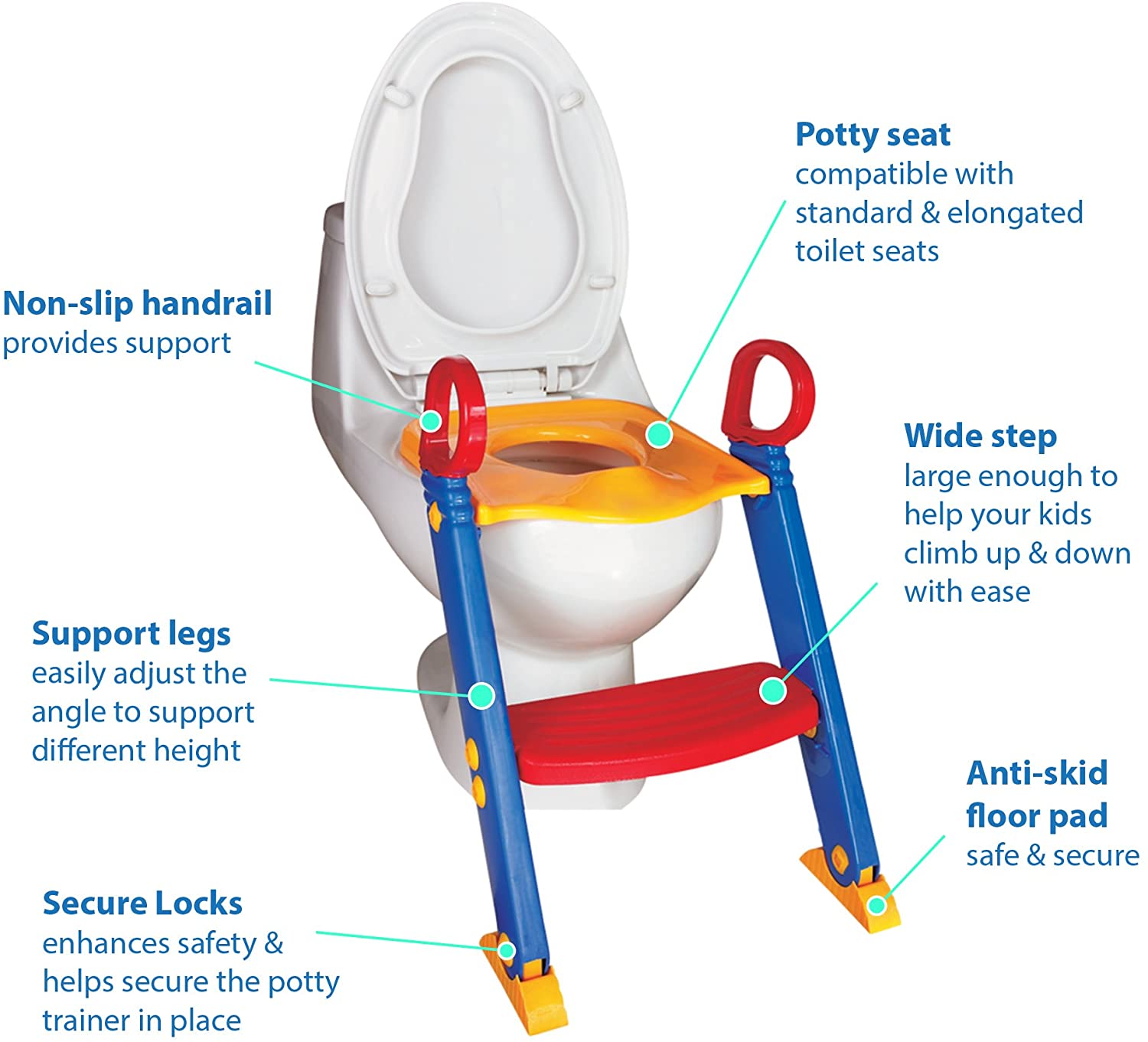 - بألوان مرحة زاهية لتجعل من التدريب على استخدام الحمام تجربة ممتعة