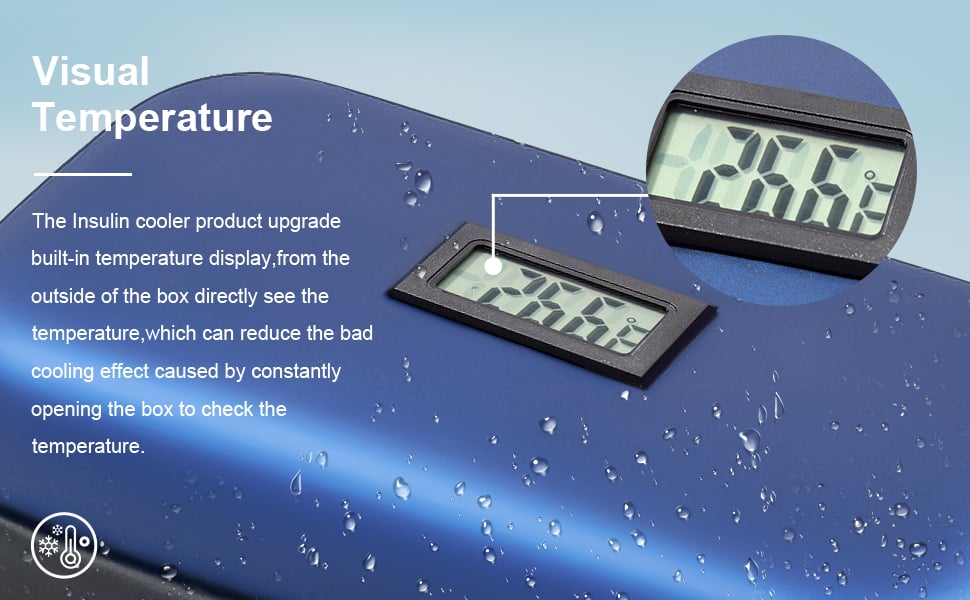 - تأتي حقيبة السفر المبردة للأنسولين مع شاشة عرض درجة الحرارة فهرنهايت.