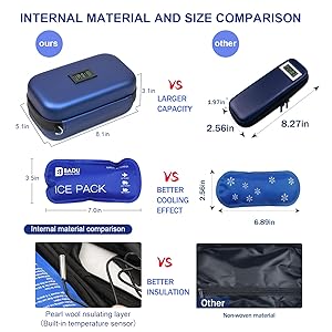 إن كيس الأنسولين المبرد الخاص بنا أكبر بنسبة 40% من المنتجات الأخرى الموجودة في السوق