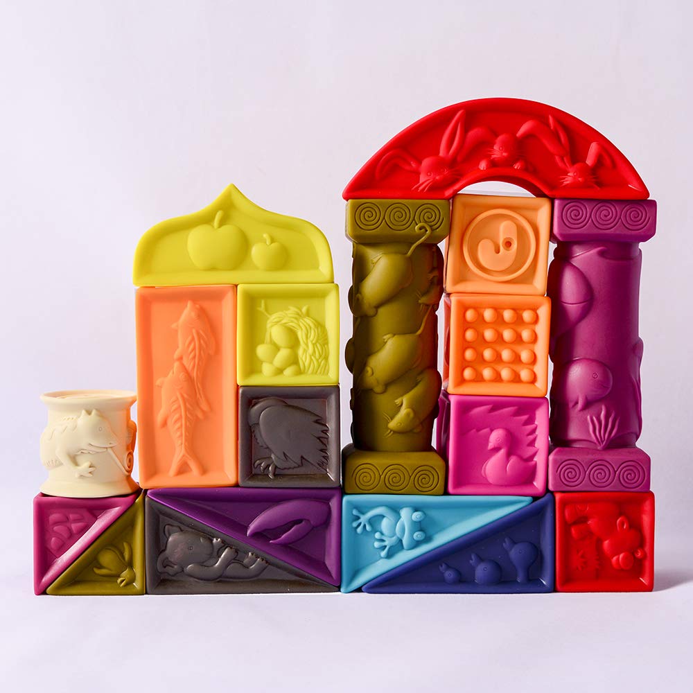 B. toys – Elemenosqueeze Baby Blocks – 26 Stacking Blocks with Shapes Numbers, Animals & Textures