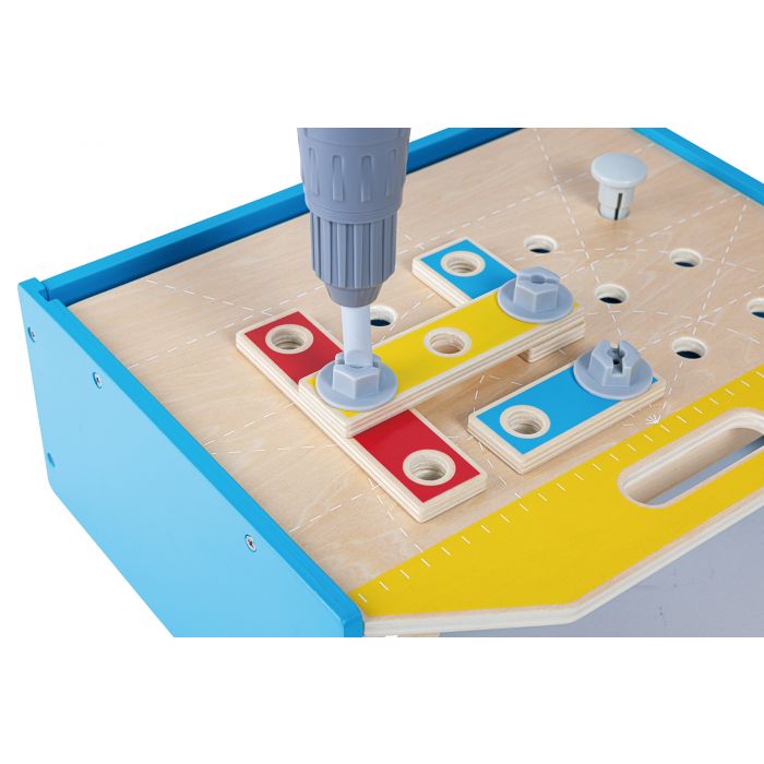 تتيح طاولة العمل لطفلك ممارسة أسماء الأدوات ووصف استخدام كل منها ووصف ما يريد بناؤه بها.