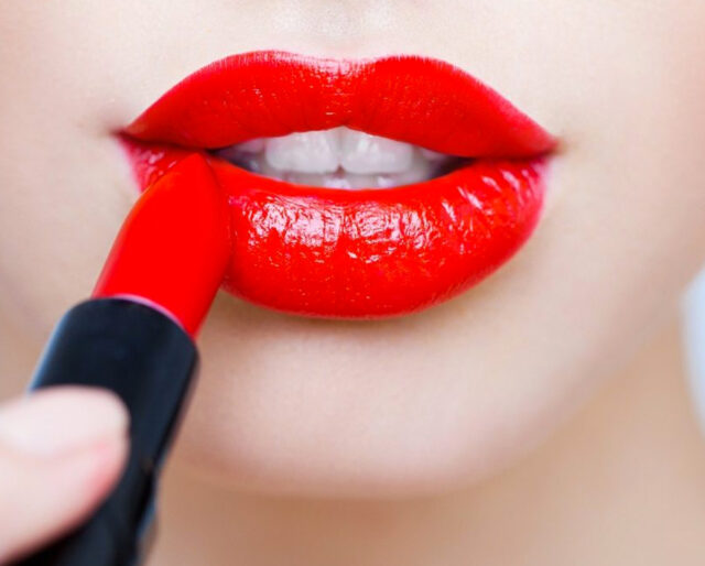 - Apply lipstick to lips from the center to the corners using gentle strokes.