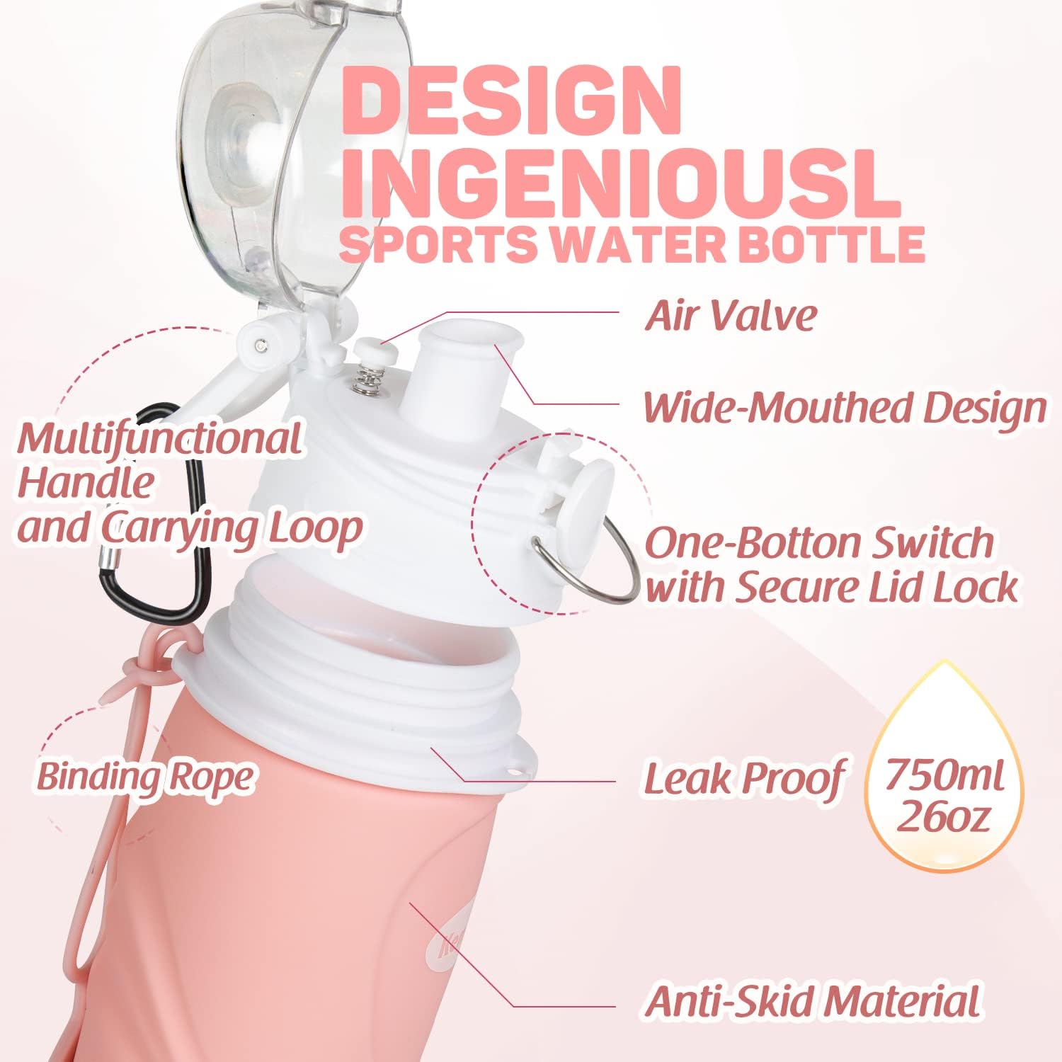 - Soft and shatter-proof - The 750ML water bottle made of food grade silicone that like baby nipple. The portable water bottle body is so soft and touched comfortable. Above all, it’s shatter-proof.
