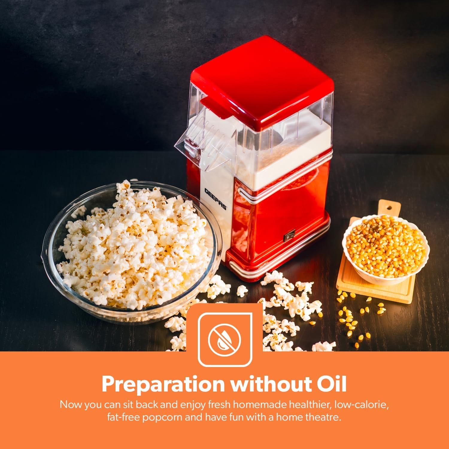 - Popcorn maker from Geepas brand, prepare popcorn with hot air without adding oil for healthy popcorn, easy to prepare and easy to use
