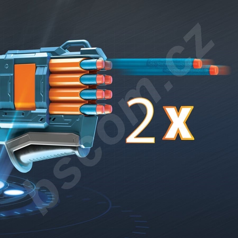 - The nerf elite 2.0 warden db-8 blaster fires two darts at once to send a double dose of firepower at your targets.