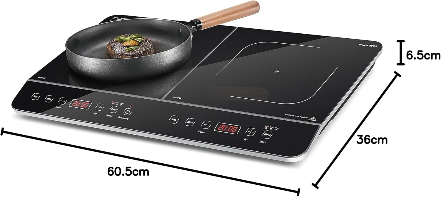 Caso Touch 3500 Induction Hob Double Mobile Safety Switch 60-240°C 6 Levels Timer 180 Minutes Pots up to 26 cm 3500 Watt Glass Ceramic